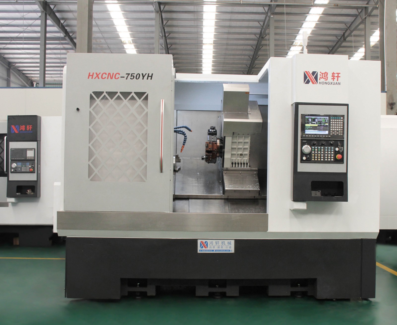 HXCNC-750YH動力刀塔帶Y軸帶尾頂機。采用30度整體斜度鑄件機身,可有效提高加工生產過程中的穩定性和鋼性。采用新代22TB系統,并采用臺灣16Y-330-12工位Y軸硬軌動力刀塔,以及液壓可程序控制尾座。床身最大回轉直徑650mm,最大加工直徑(盤類)600mm,最大加工工件長度710mm,最大棒料通孔直徑?51MM。